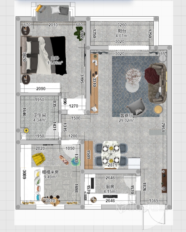 在暖色的空間底色中,灰藍(lán)色與粉色碰撞出一種居家活力感。